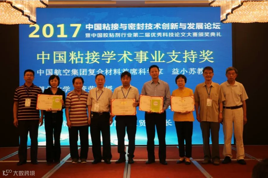本次论坛及有奖征文大赛,得到了众多粘接界和胶粘剂行业资深专家和企业大力支持,这些专家与企业出于推动中国粘接学术事业发展的公心与远见,对本次活动的组织给予了无私的无偿的也是最宝贵的支持,为此,经论坛组委会一致推荐,会议专门为本次论坛及有奖征文活动组织做出突出贡献的专家学者颁发了“中国粘接学术事业支持奖”。