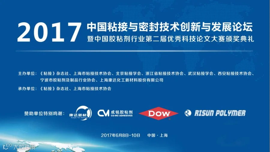2017年6月8-10日,“2017中国粘接与密封技术创新与发展论坛暨中国胶粘剂行业第二届优秀科技论文有奖征文大赛颁奖典礼”在上海隆重召开。本次活动由《粘接》杂志社、上海市粘接技术协会、北京粘接学会、浙江省粘接技术协会、武汉粘接学会、西安粘接技术协会、宁波市胶粘剂及制品行业协会、上海康达化工新材料股份有限公司等单位联合举办,来自国际国内粘接研究领域的近200位专家、学者、企业家和科技工作者出席了会议。这是继2014年首届粘接与密封技术创新与发展论坛后的第二届论坛,康达新材、成铭热熔胶、陶氏化学、瑞洋立泰等单位对本次活动给予了赞助支持。