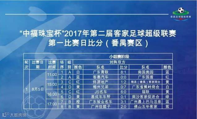 而番禺赛区第一轮小组赛余下6场比赛则于下午在番禺木生缘体育场进行。