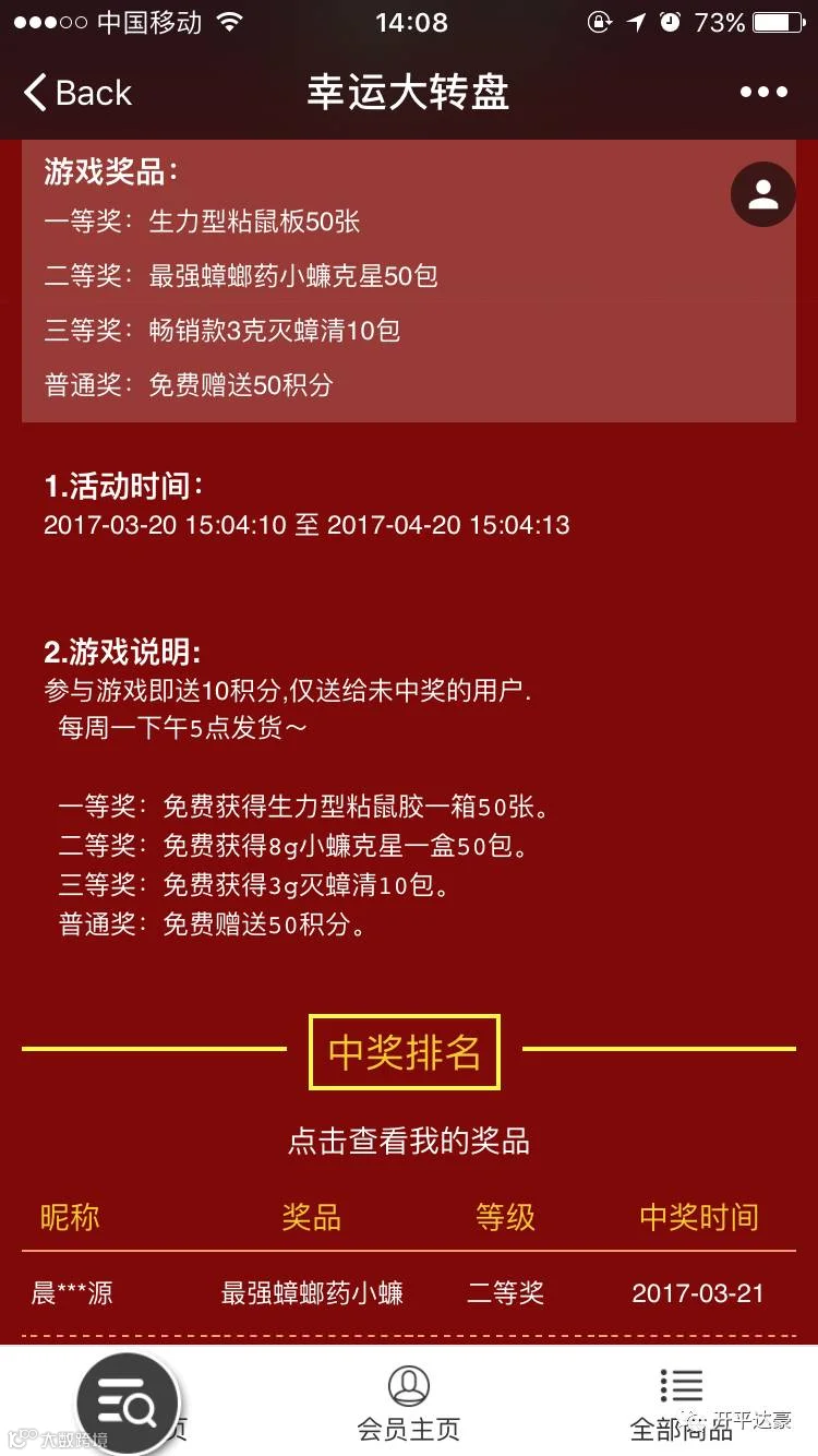 普通奖 赠送50积分,积分可以兑换奖品/抵现金(准备开始)