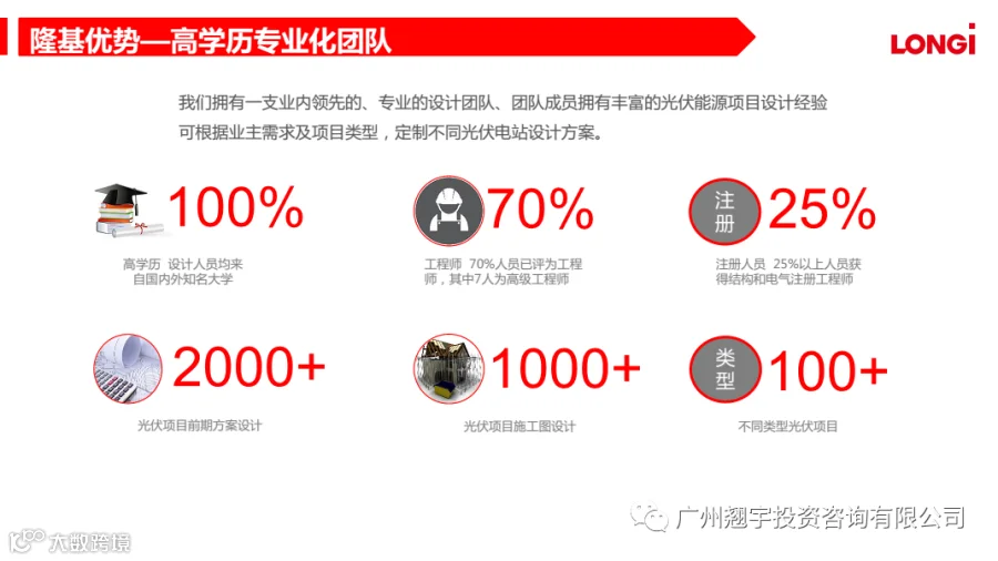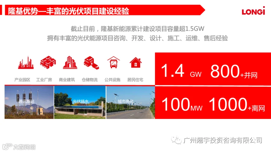 隆基光伏系统是广州翘宇面向大型工业企业强烈推荐使用的屋顶光伏系统,具有高效单晶硅基电池组所具有的优势。
