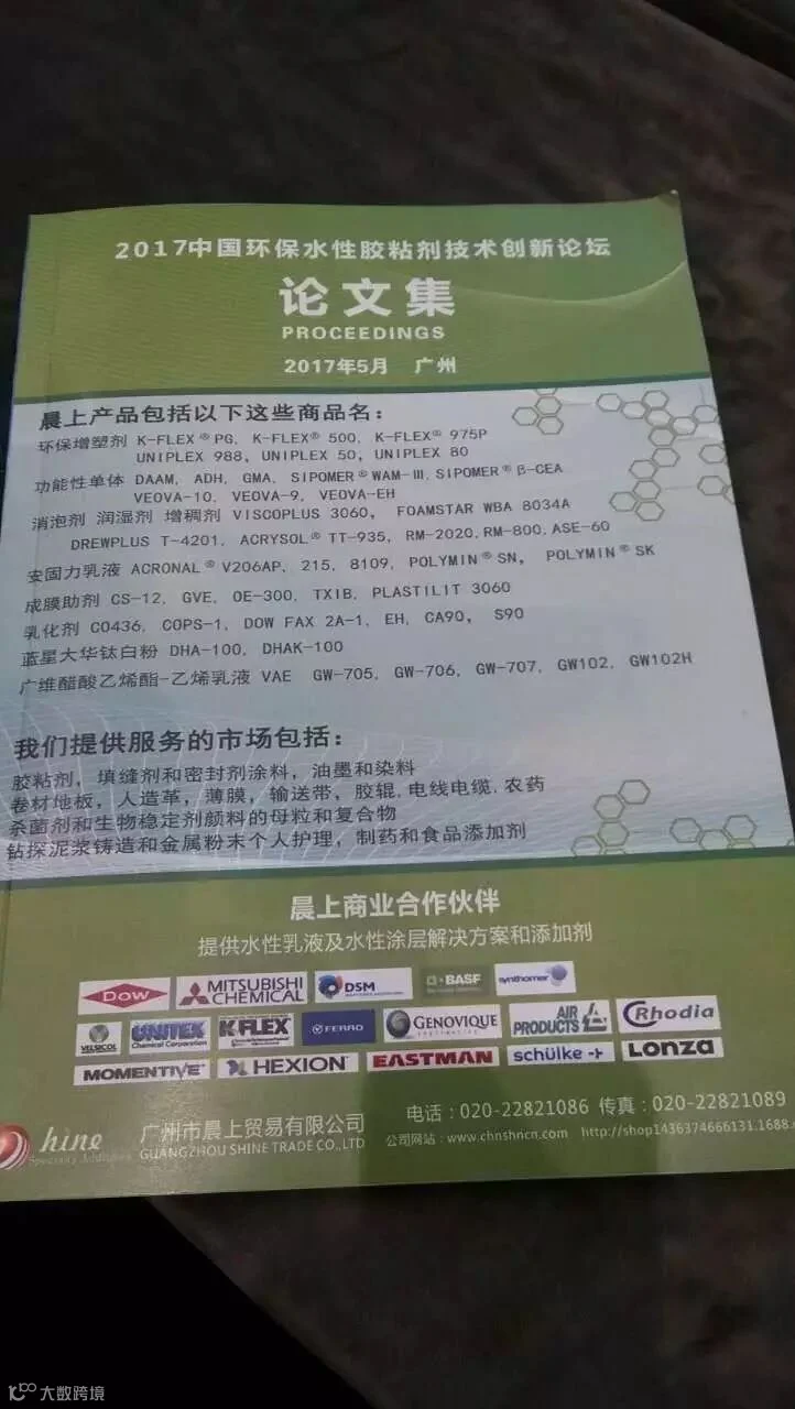 协办单位:水性平台、中国中小涂料企业联合会、粘接杂志社、河北省粘接与涂料协会、浙江省粘接技术协会、武汉粘接学会、宁波市胶粘剂及制品行业协会、上海市闵行区腐蚀科学技术学会、国家涂料产品质量监督检验中心、超评商务咨询(上海)有限公司、佛山今佳新材料科技有限公司等