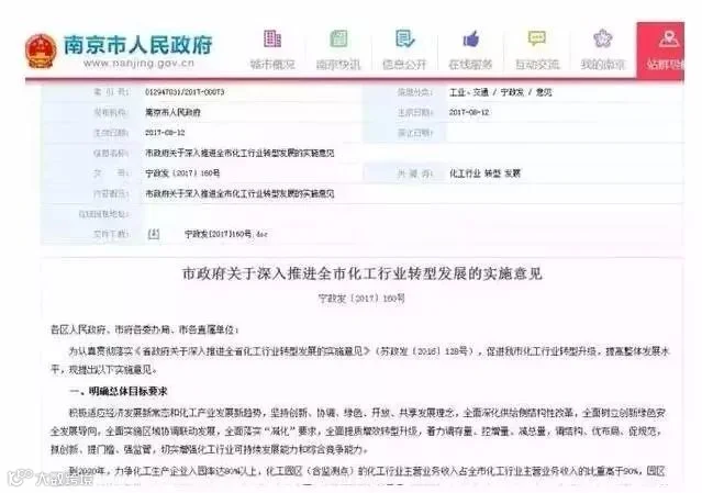 除了山东之外,8月17日,南京市政府也公布《市政府关于深入推进全市化工行业转型发展的实施意见》,明确:今后一律不批新的化工园区,一律不批化工园区外新扩建化工生产项目,一律不批化工园区内环境基础设施不完善或长期不能稳定运行企业的新改扩建化工项目。