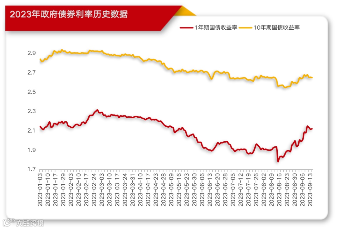 截至9月14日,1年期国债收益率为2.1209%,10年期国债收益率为2.6497%。