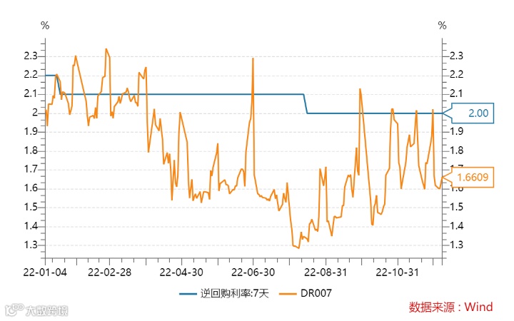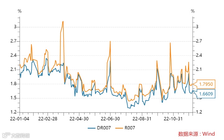 本周(12月2日-12月8日),DR007(银存间7天质押回购利率)处于震荡上行的态势,截至12月8日,DR007报收1.6609%。