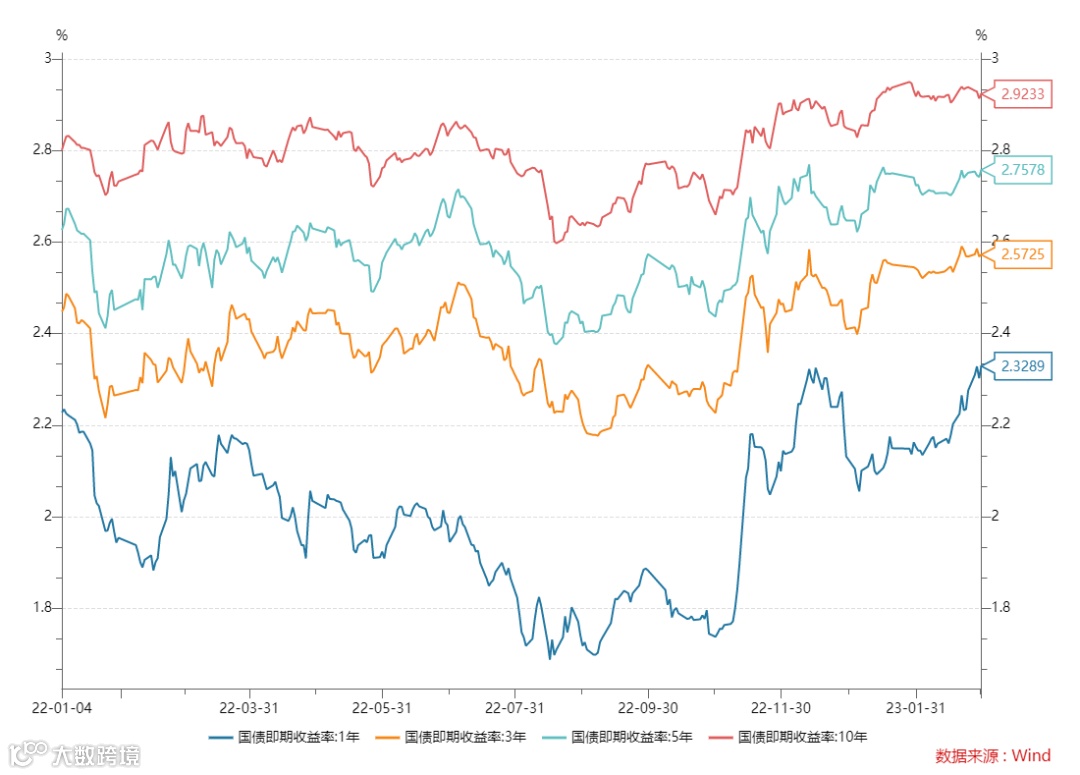 本周1年期国债即期收益率快速上升,3月2日,1年期国债即期收益率2.3289%,10年期国债即期收益率2.9233%。