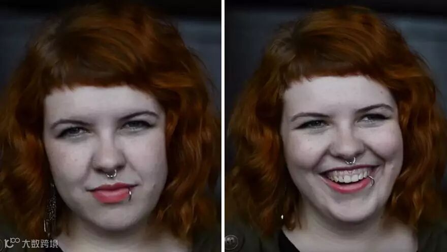 当被告知“你很美”之后,接下来,好像真的有奇妙的事情发生。以下图片,是被拍者听到这句话之前和之后的表情对比。