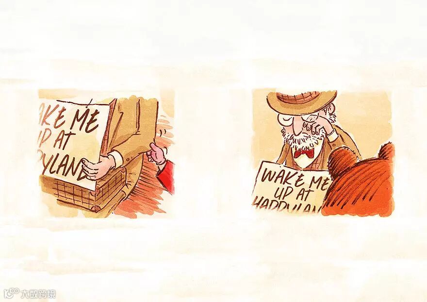 一个心心念念想要寻找Happy Land的老头,踏上了一段非比寻常的旅途。他很想一觉睡到欢乐岛,于是专门写了块板子“在Happy Land叫醒我”并抱在怀里,好让周围的乘客及时提醒他。结果,没有一个人喊醒他,直到一个小姑娘出现……