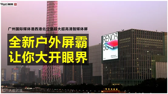 中国单体最大户外高清广告屏广州国际媒体港户外智媒体现已进入正式运营期。开屏至今,广州国际媒体港户外智媒体屏凭借独具特色的点位优势和强大的传播能力受到了众多行业品牌的厚爱。