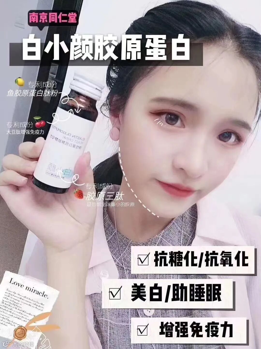 300年历史南京同仁堂独家乐铺白小颜胶原蛋白,多重功效-----抗糖化、抗氧化、美白肌肤、助睡眠、增强免疫力