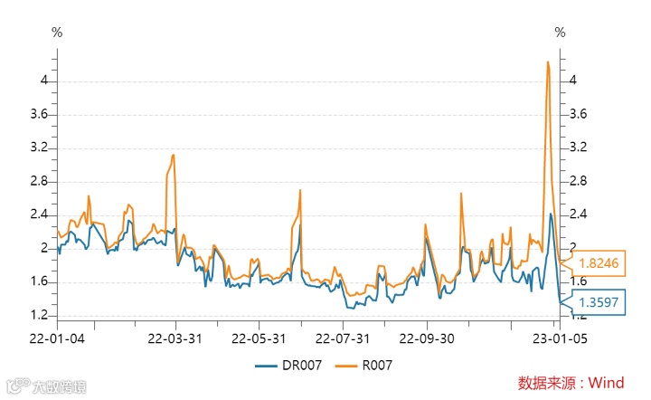 本周国债即期收益率继续回落,1月5日,1年期国债即期收益率2.0552%,10年期国债即期收益率2.8452%。