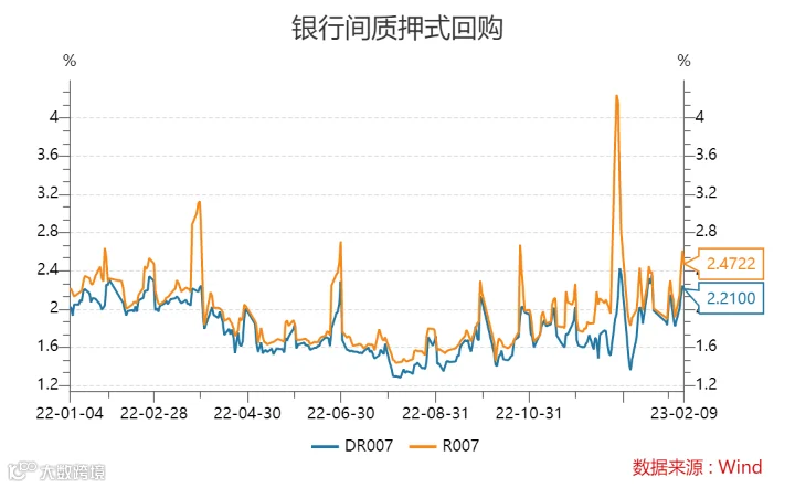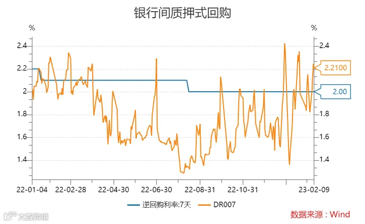 本周(2月3日-2月9日),DR007(银存间7天质押回购利率)小幅上升,截至2月9日,DR007报收2.2100%。