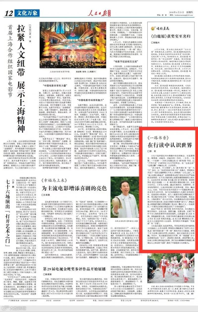 《一路书香》再次荣登人民日报!!!