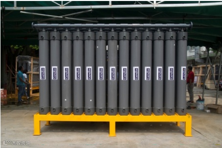 该项目泥浆废水悬浮物高、呈砖红色;经过沉淀后上清液浑浊、呈粉白色未能满足回用要求。现将泥浆废水直接进入柔性陶瓷膜一体化设备过滤处理,处理后的出水澄清透亮,可回用于场地清洗或绿化养护。