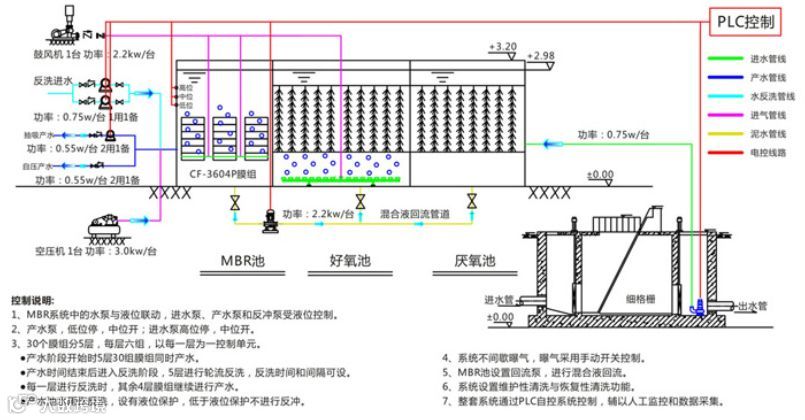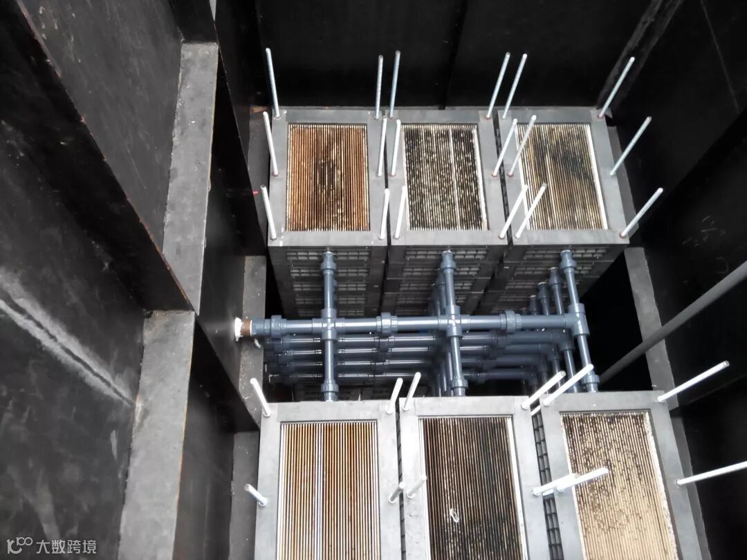 此项目为富士康某厂区3000t/d污水的MBR,采用外置式结构,其主要特点是:在工业污水等难度废水的MBR系统中,外置式结构可以保证在某一膜组单元发生污堵时,能单独进行该单元恢复而不影响系统整体产水,保证污水有足够的去处。
