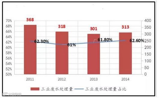 近年来,我国工业废水处理量达到300~370亿吨,处理率约为62%,虽然已取得显著进步,但仍有很大提升空间。