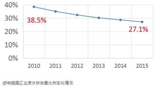 2015年,在我国工业废水排放量中,化工、造纸、纺织及煤炭行业废水排放总和几乎占到一半,是工业废水排放大户。