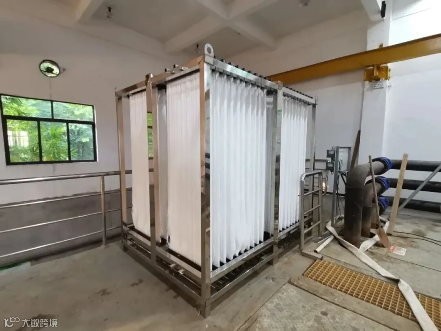 膜组件过滤: 生化系统出水混合液通过MBR膜组件进行分离。膜孔径通常在0.01至0.4微米之间,可以有效截留悬浮物、细菌及大部分有机污染物,而水分子则顺利通过膜孔。