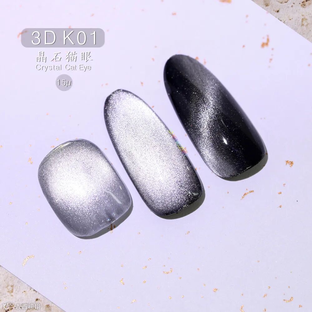 40μm 粒径磁粉,带来超强磁光爆发力,吸磁后呈现出浓郁的金属光泽,猫眼效果立体深邃,像把整块晶石封存在指甲里,气场拉满。
