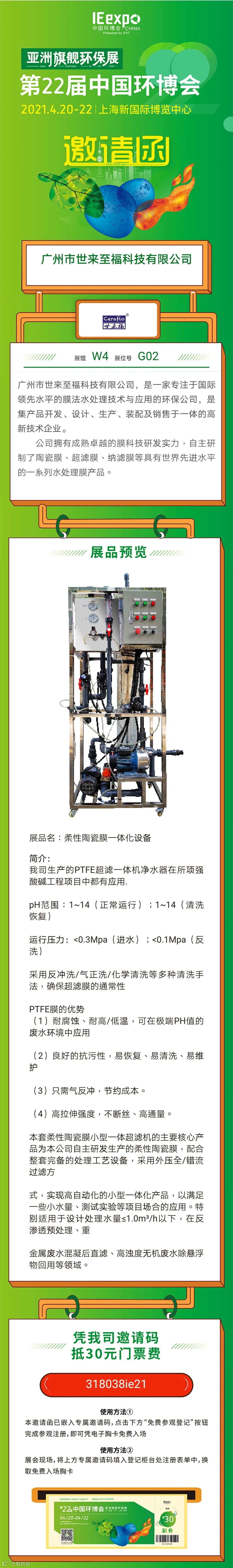世来至福4月20-4月22日与您相约上海新国际博览中心中国环博会