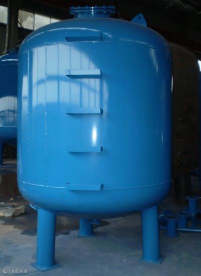 机械过滤器的吸附是一种物理吸附,根据填装滤料的不同,可分为石英砂过滤器、锰砂过滤器、活性炭过滤器、无烟煤过滤器、硅藻土过滤器等。外壳材质多为不锈钢,也有碳钢和玻璃钢,过滤精度为0.8~1.5mm,主要吸附水中一部分有机物、胶体硅、余氯、色素、金属离子等。