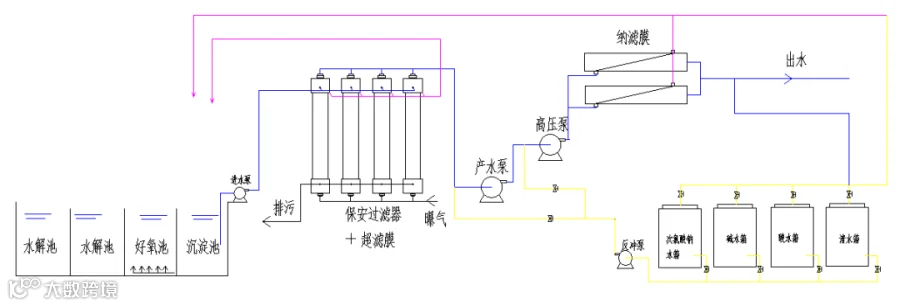 退浆是用化学药剂将织物上所带的浆料退除(被水解或酶分解为水溶性分解物),同时也除掉纤维本身的部分杂质。退浆废水是有机废水,呈淡黄色,含有浆料分解物、纤维屑、酶等,废水呈碱性,pH值为12左右,COD和BOD含量约占印染废水的45%左右。