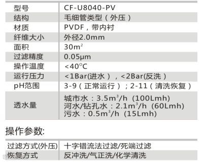 PVDF膜的抗拉伸强度和抗压强度大大提高(与同类膜相比),且不易断丝,过滤精度达到0.05μm,而且不添加任何化学物质。依靠超滤膜表面密布的微孔进行筛分,从而截留微生物、胶体、硅藻以及其他引起浑浊的有害物质,实现过滤净化的效果。具有良好的耐化学腐蚀、耐氧化以及耐光老化等性能,因此可以使用各种方法反复清洗,以除去污染物和恢复通量。