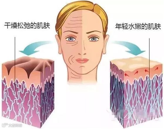 表现为皮肤粗糙、松弛、下垂、和出现皱纹