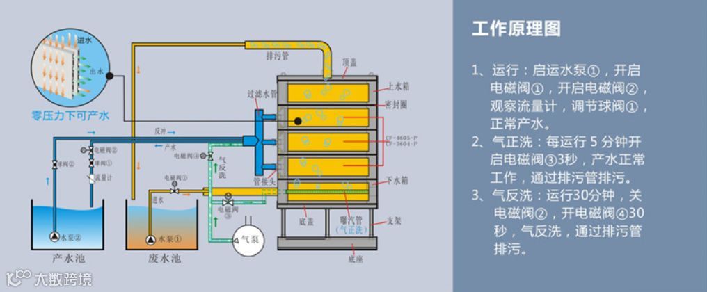 整个膜过滤系统的操作简便,有着较高的产水通量、产水水质和系统回收率,可以满足时下最严格的排放标准,针对不同过滤水体,可选择气/水反洗方式恢复通量,其高效抗污染能力可以减少操作费用与缩短停机维护时间。