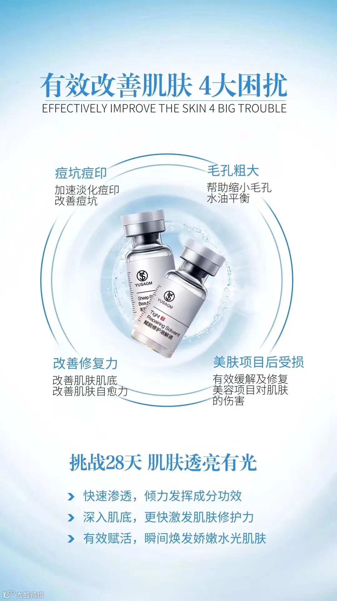 它获得了美国FDA认证ISO认证,4D玻尿酸精准定位皮肤不同层次:角质层、表皮层、真皮层、外层补水,内部锁水,全方位全层次的护理肌肤。