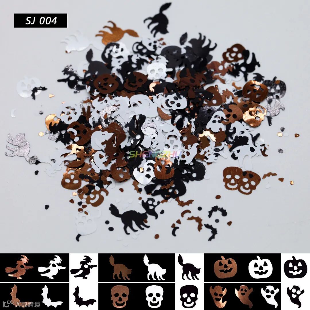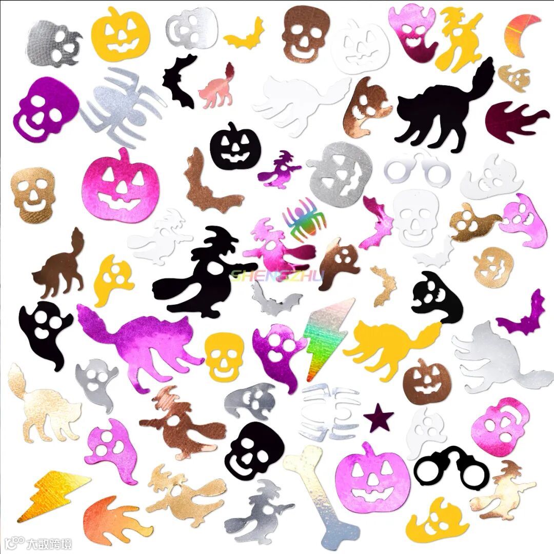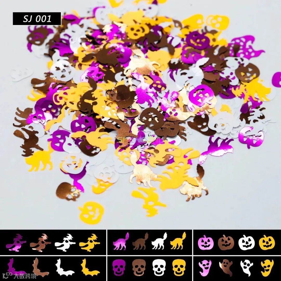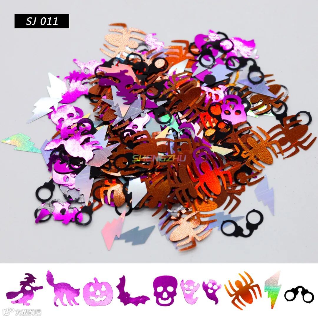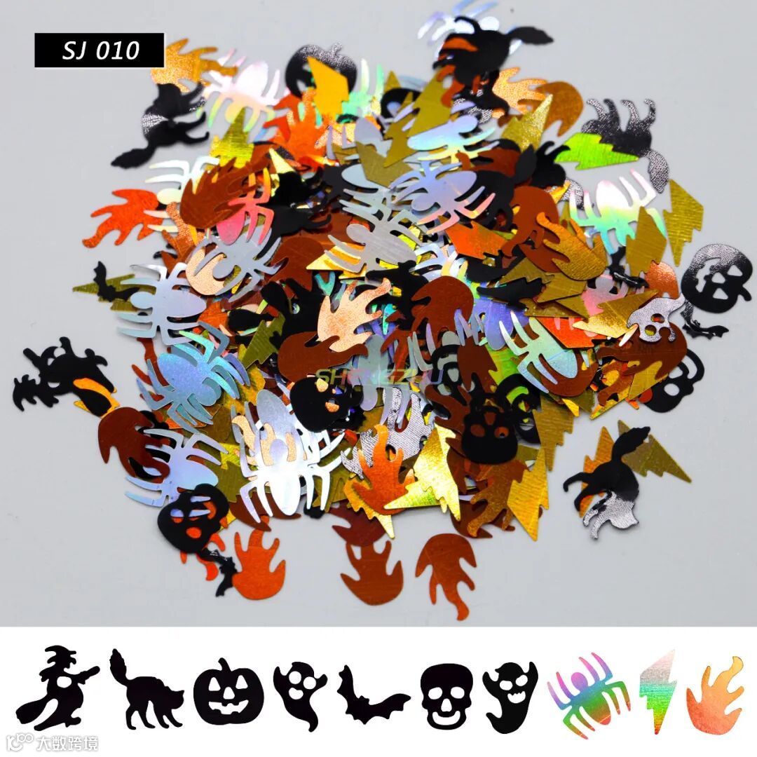 装饰金葱,有多种颜色图案选择,南瓜、女巫、幽灵、骷髅......,节日氛围感十足,共有13个型号,一起来看看吧