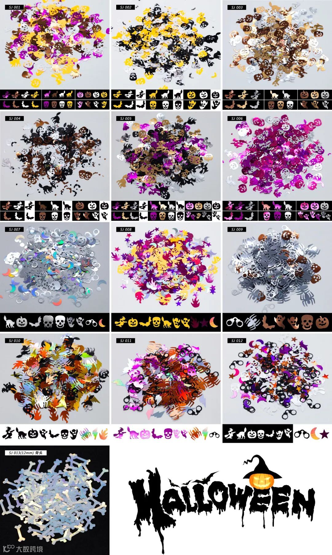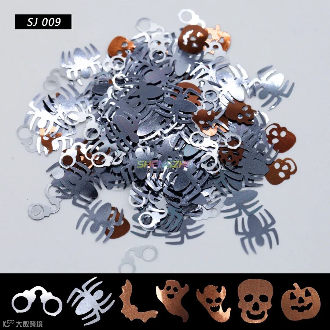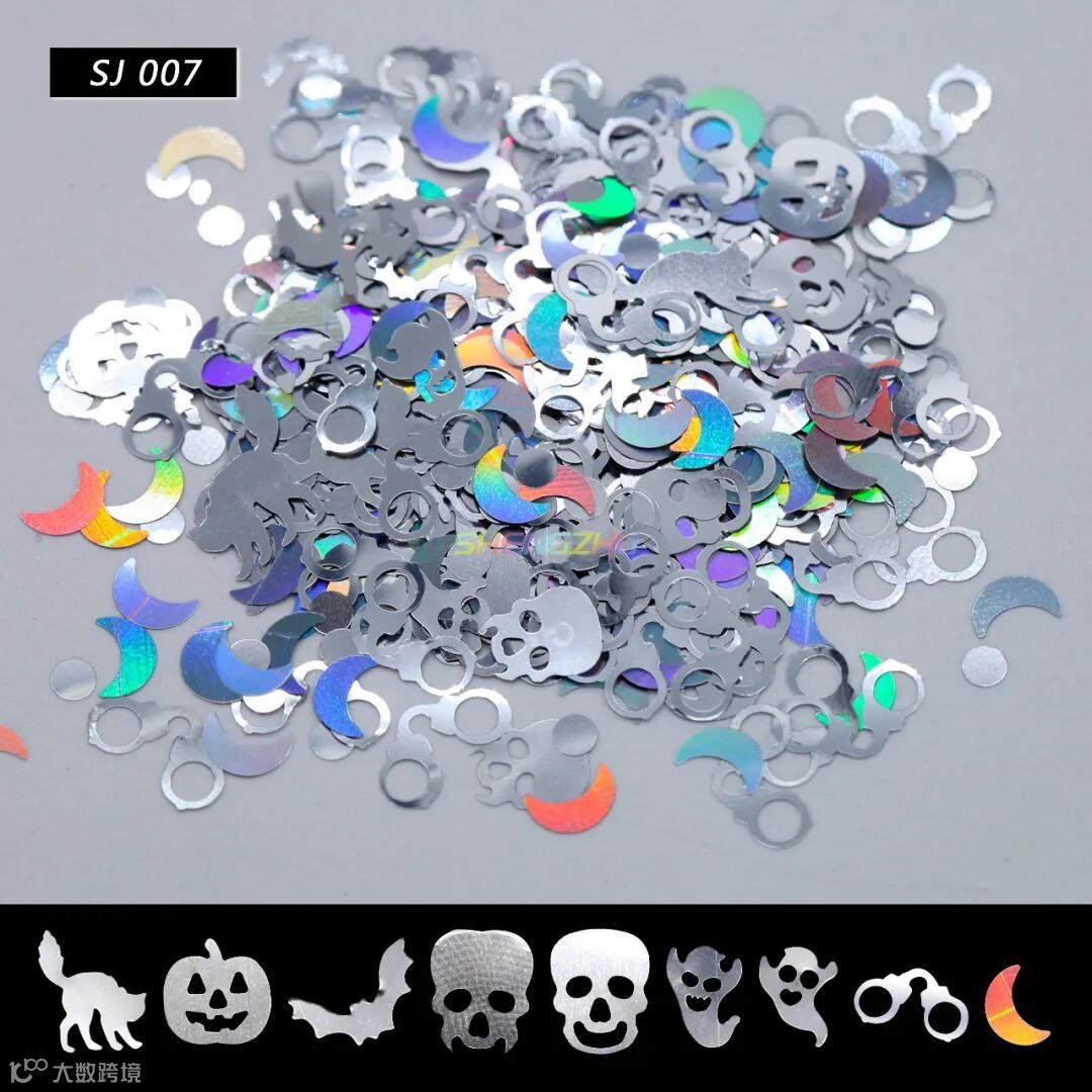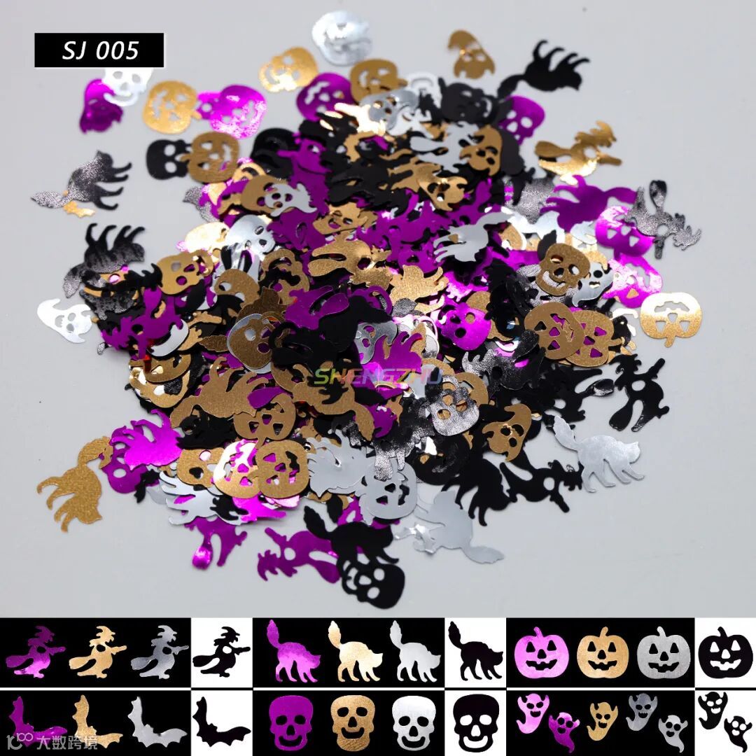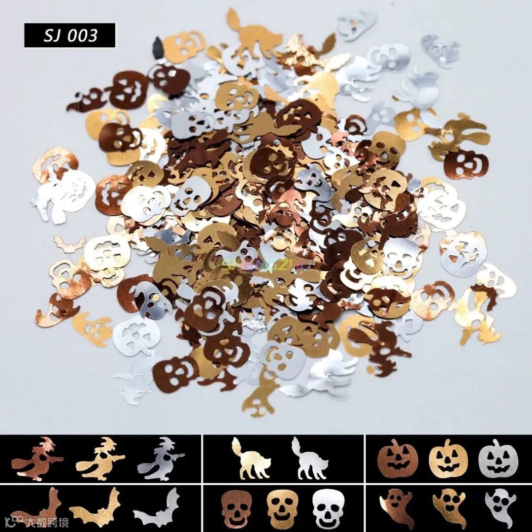 装饰金葱,有多种颜色图案选择,南瓜、女巫、幽灵、骷髅......,节日氛围感十足,共有13个型号,一起来看看吧