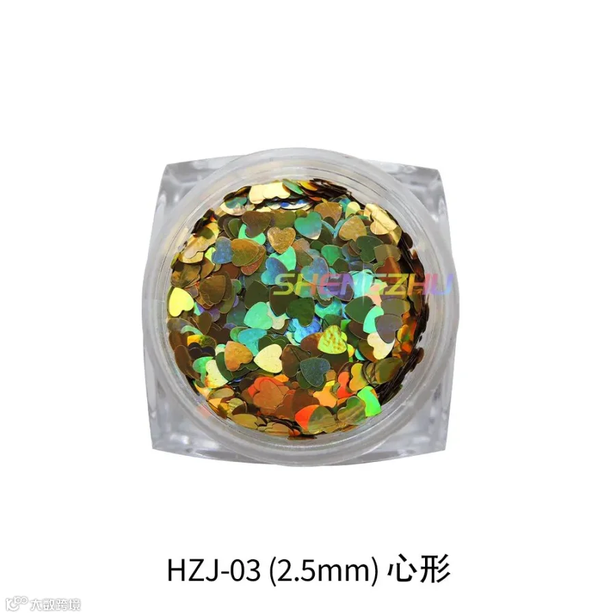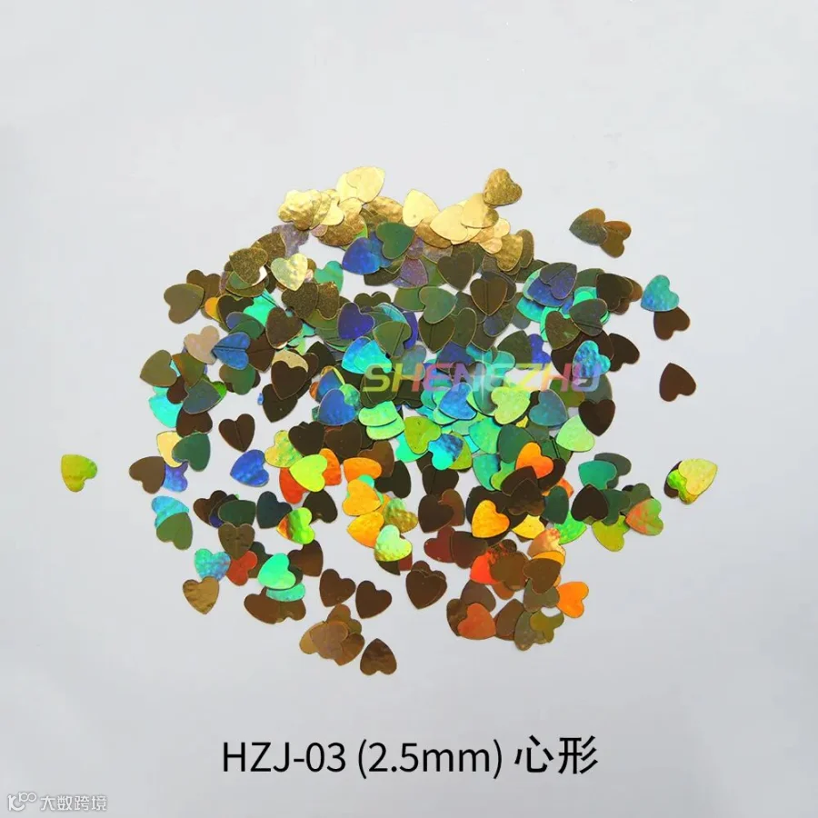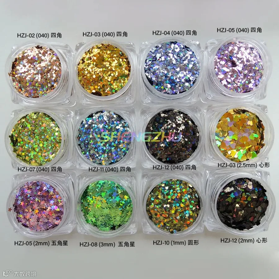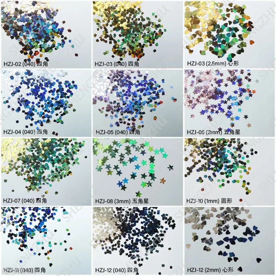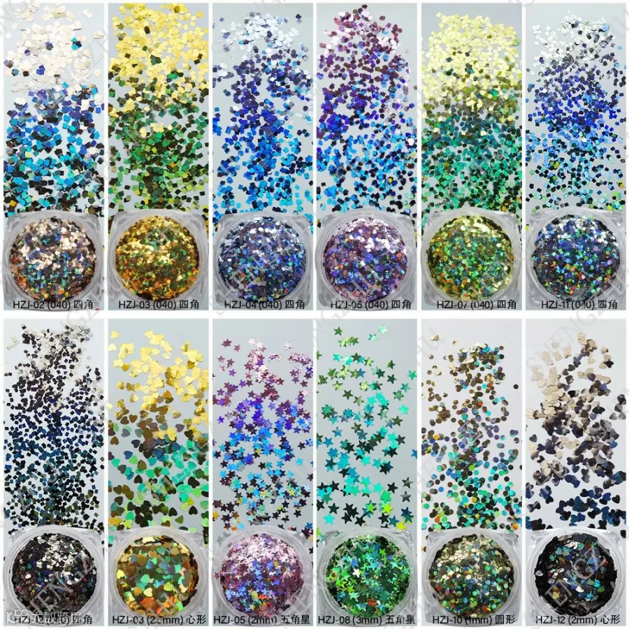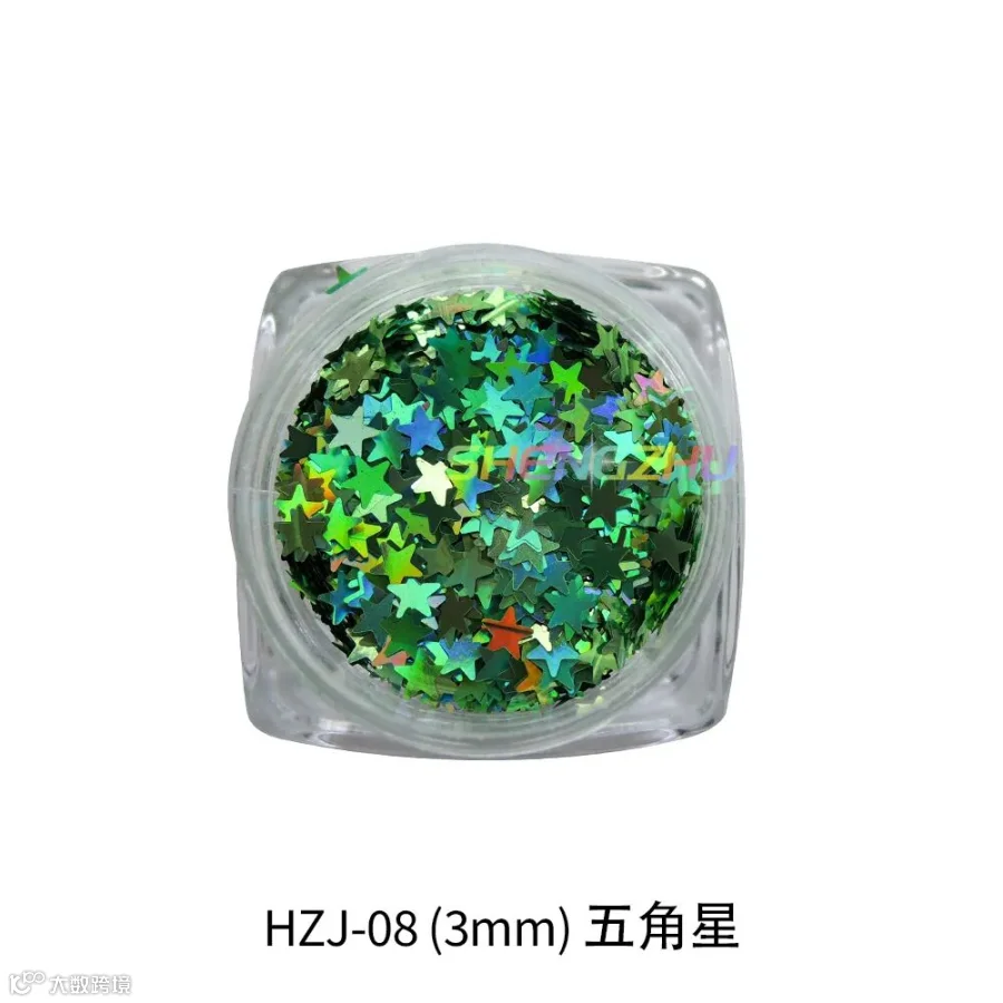导读:‘镭射金葱粉七彩闪粉亮片幻彩美甲PET金粉片’的闪光度高,亮度高,镜面效果明显。镭射幻彩效果明显,可增强产品的视觉效果,使得装饰物鲜艳夺目、倍添光彩。形状有四角形、圆形、心形,五角星等