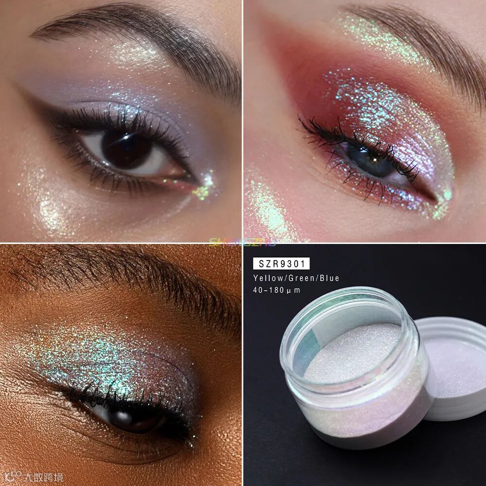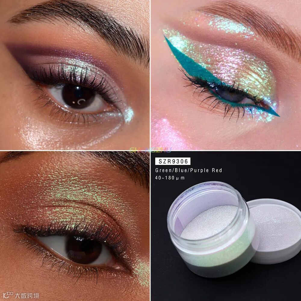 哈喽~大家好!今天给大家带来的是三色极光变色龙粉,可用于彩妆眼影、高光效果等。为您创造迷人的眼妆,薄涂效果若隐若现,低调不失俏皮,厚涂效果绚丽耀眼夺目。不同肤色会有不一样的颜色效果,一起来看看吧~
