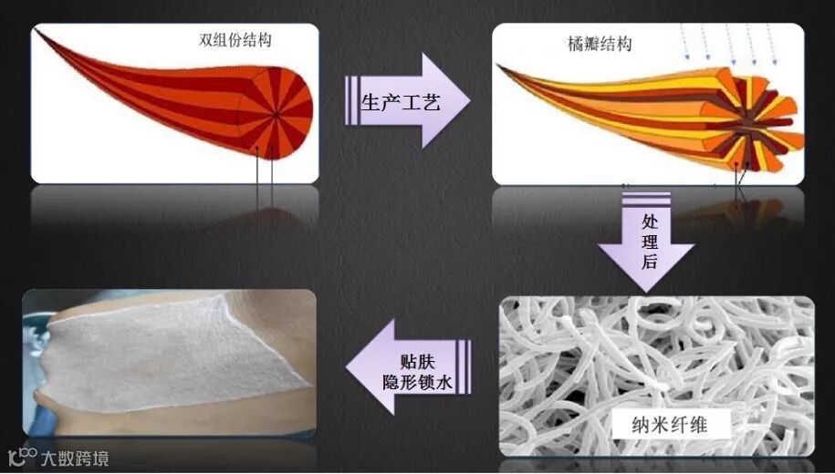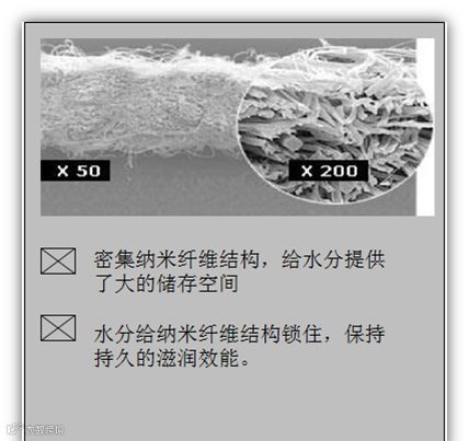 中空毛细管结构能够保存自身重量的水分,同时满载亲水高分子基团,组成纤维的高分子结构,密集的亲水基就像一只只机械手牢固的锁住水分。达到双层锁水效果,一片抵两片。
