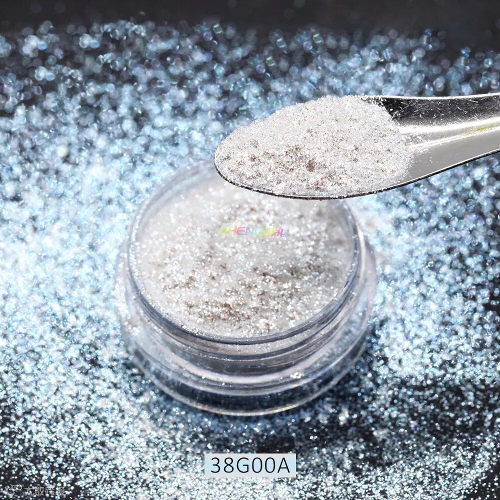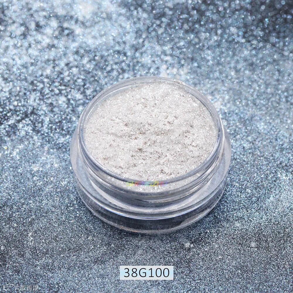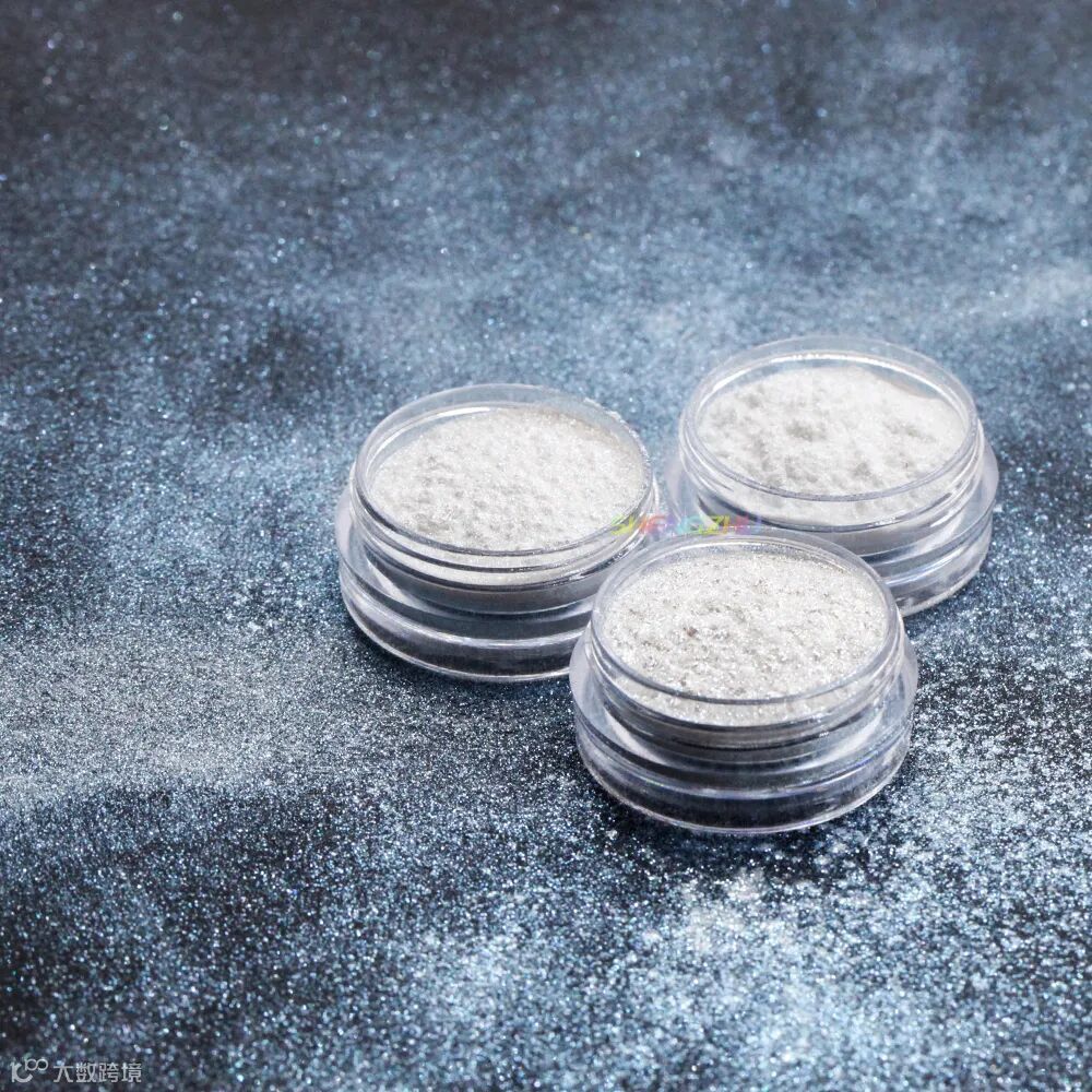 "赛博冰川粉"遇油脂呈现冰川蓝调,与水结合幻化金属银辉。