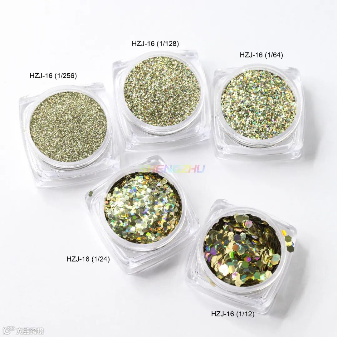 晟珠效果颜料大家周末好~今天给大家带来的是【耐溶镭射金葱粉彩色闪粉】,广泛用于:圣诞纸品、首饰品、化妆品、玻璃工艺、玩具、对联、鞋材、皮革、流沙手机壳、美甲等。有6种颜色,每种颜色都有多种粒径可选,一起来看看吧~