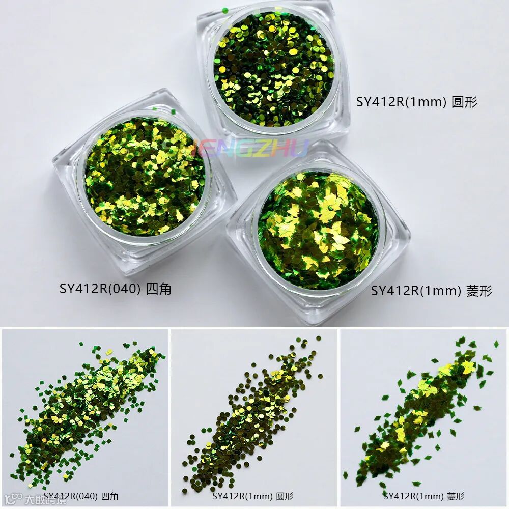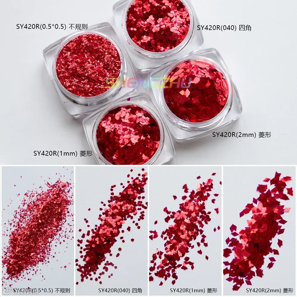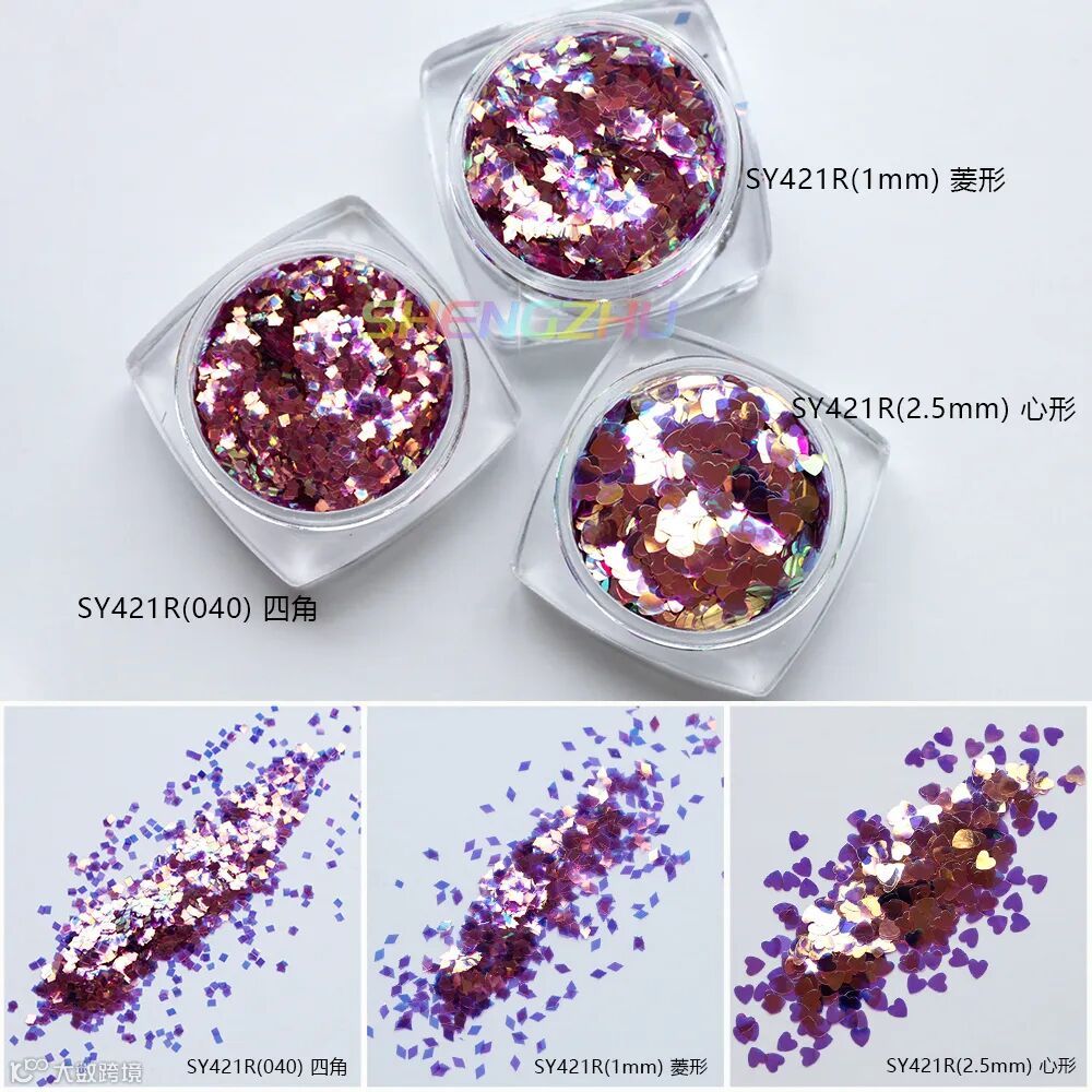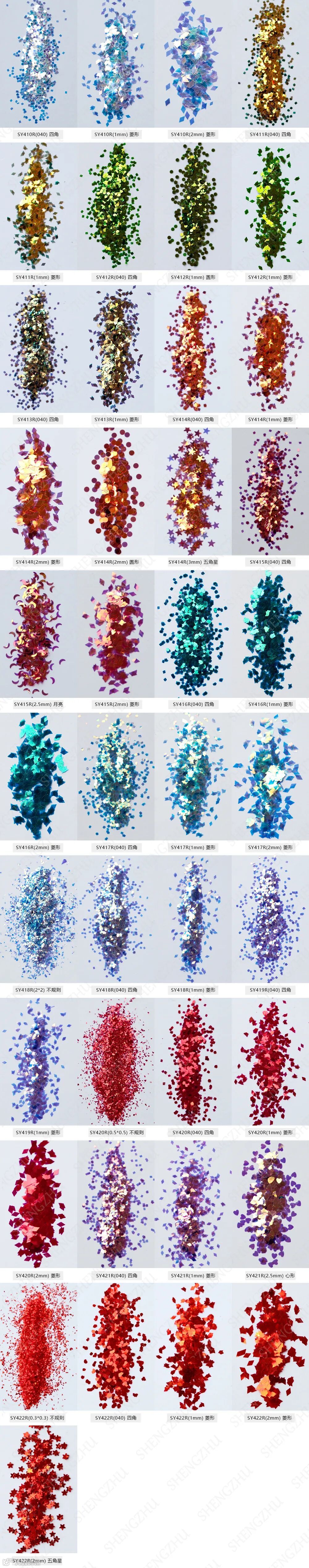 导读:“渐变彩色异形金葱粉亮片”有菱形、四角、圆形、月亮、五角星、心形、不规则等多种形状,金葱的亮度高,色彩绚丽。有13个颜色可选