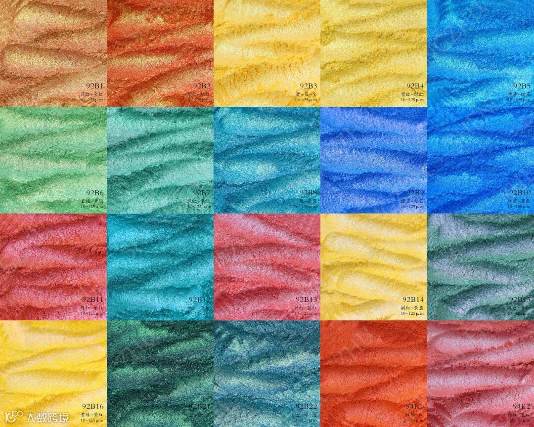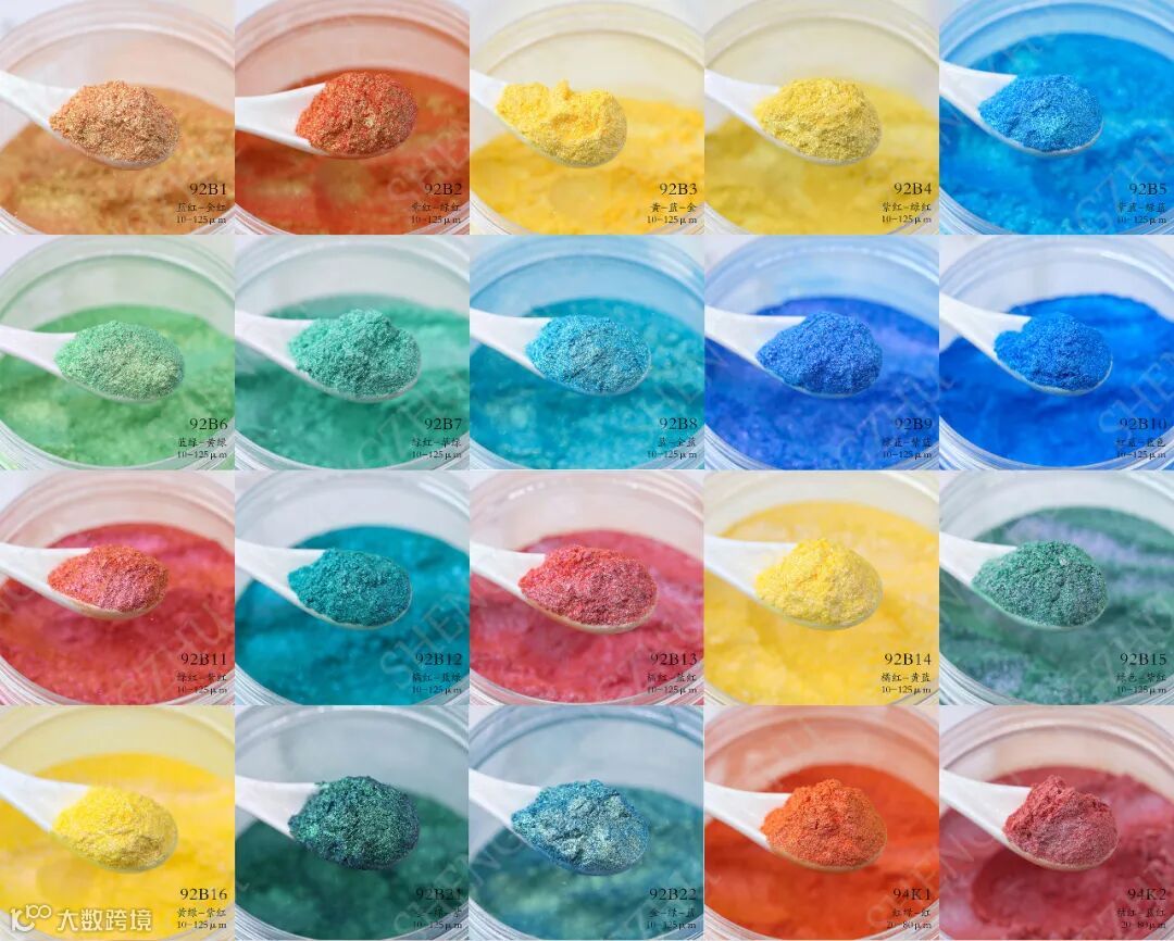 哈喽~大家好,今天给大家介绍的是着色变色龙色粉,可用于彩妆、汽车喷漆、橡皮泥、塑料制品、家具、工艺品、运动器材等领域,不同角度会有不一样的视觉效果