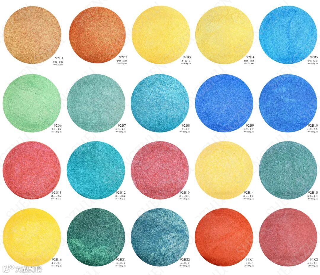 晟珠效果颜料哈喽~大家好,今天给大家介绍的是着色变色龙色粉,可用于彩妆、汽车喷漆、橡皮泥、塑料制品、家具、工艺品、运动器材等领域,不同角度会有不一样的视觉效果
