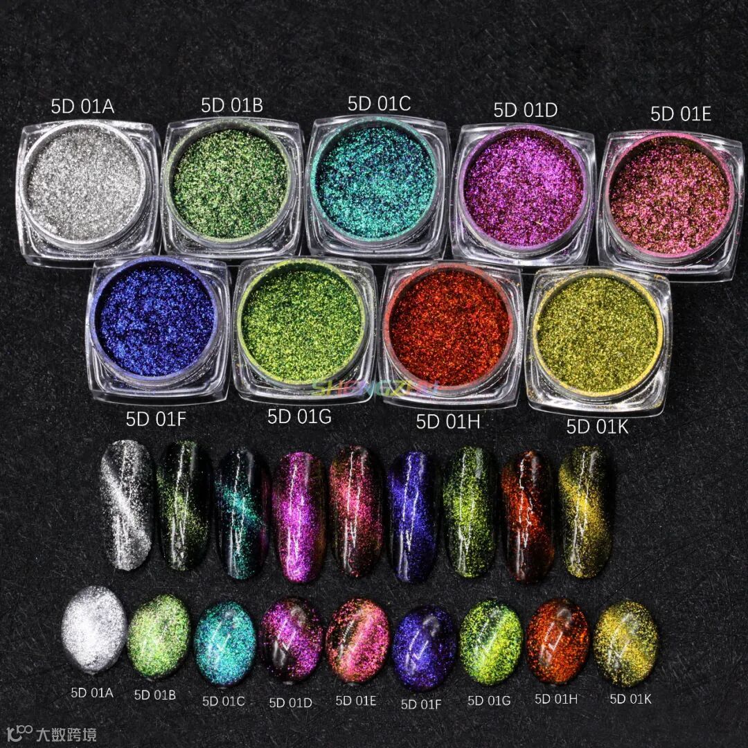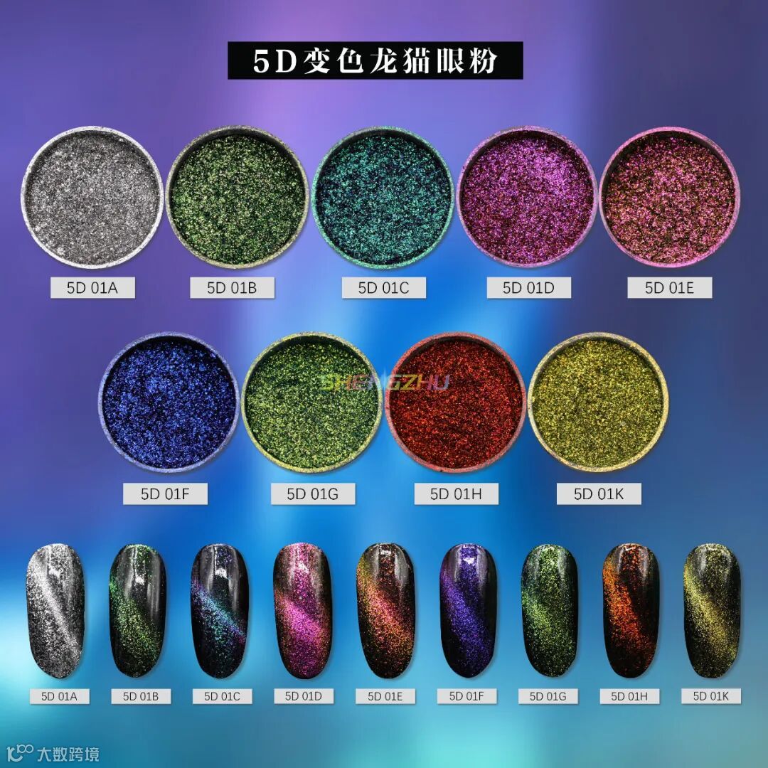 晟珠效果颜料哈喽~大家好,这周给大家带来的是新品“梦幻变色流沙极光猫眼美甲粉”,它的粉质磁性好易涂刷,一吸成型,用磁力轻推出形状后照灯封层即可,颜色如流沙星河般梦幻浪漫,不同视觉角度,猫眼变色效果也会不同,共有9种颜色,一起来看看吧~