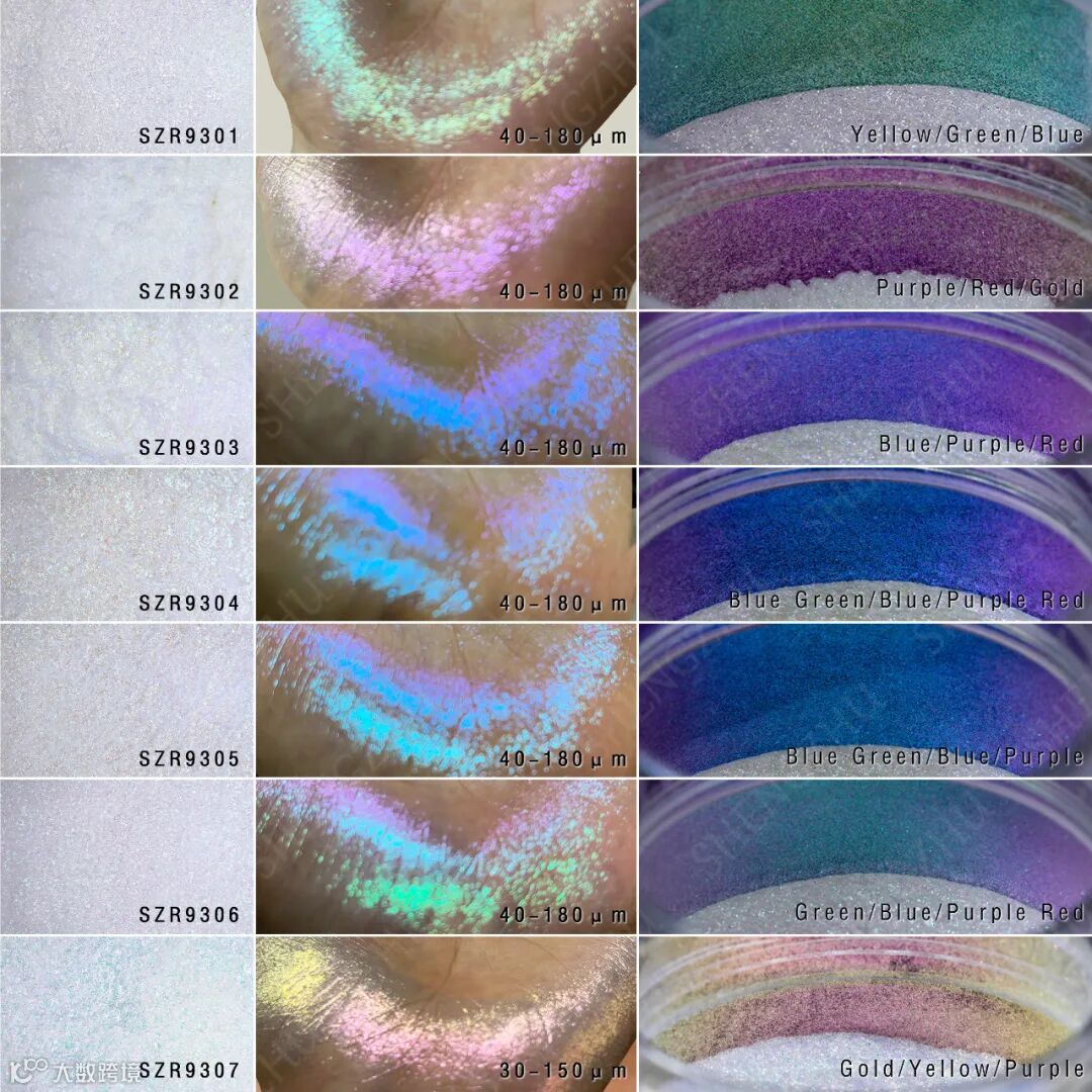 晟珠效果颜料哈喽~大家周末好,今天给大家带来的是新品‘三色人鱼高光冰肌幻彩变色龙粉’,粉质细腻一抹上色,每个粉都有明显的三色幻彩变化,化妆品级系列可用于彩妆,闪光灯下会有不一样的效果呈现,有七个颜色可选,一起来看看吧~