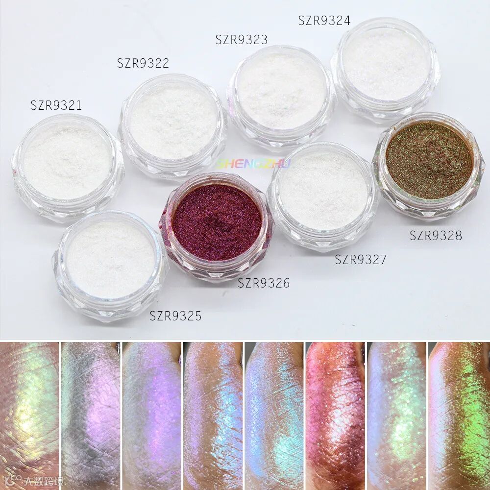 晟珠效果颜料哈喽~大家好!今天给大家带来的是新品“梦幻极光钻闪变色龙粉”,六款粉末呈白色,涂抹开呈现梦幻极光色,还有两款是有色变色龙粉,变色效果强、亮度高,不同角度下有不同的颜色呈现,三色变幻,有8个颜色可选,一起来看看吧~