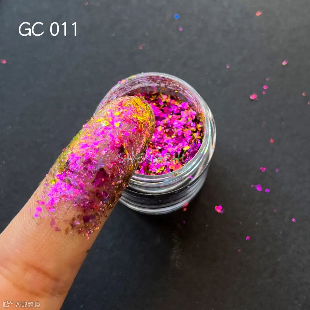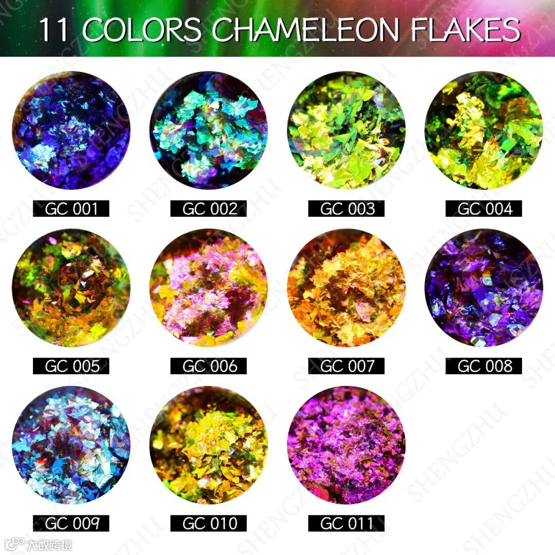 晟珠效果颜料哈喽~大家好,今天给大家介绍的是新品高彩度光学变色龙粗片,一抹上色,炫彩变幻效果好,亮度更佳,可用于彩妆,不同角度会有不一样的视觉效果,共有11个颜色,一起来看看吧~