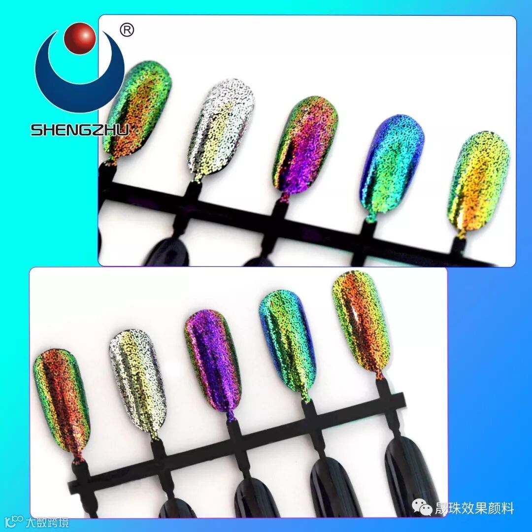 晟珠效果颜料今天继续给大家带来产品介绍,这一次是圆形金葱的产品,该款产品光泽亮丽,在不同的角度看到的色彩都有所不同,可以说是变幻无穷,做在不同的底色上,效果也是大不相同,现在就为大家呈现它们在黑底和白底上的效果,希望您喜欢。