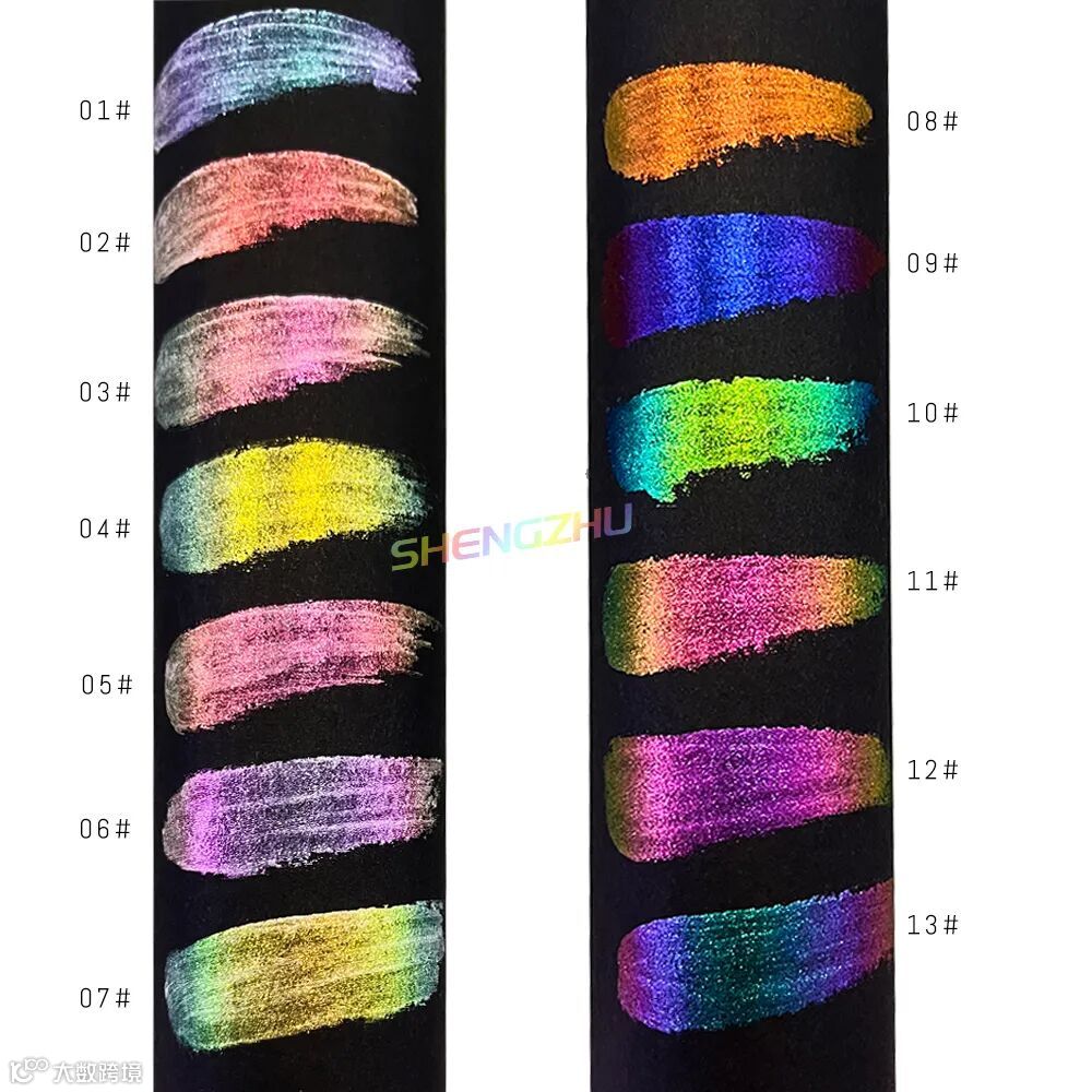 晟珠效果颜料哈喽~大家好,今天给大家带来的是新品彩妆变色龙液体眼影,极光变色金属感强,多种颜色变幻一抹上色,外观小蛮腰瓶身设计,眼影变色效果清晰可见,共有13色,一起来看看吧~