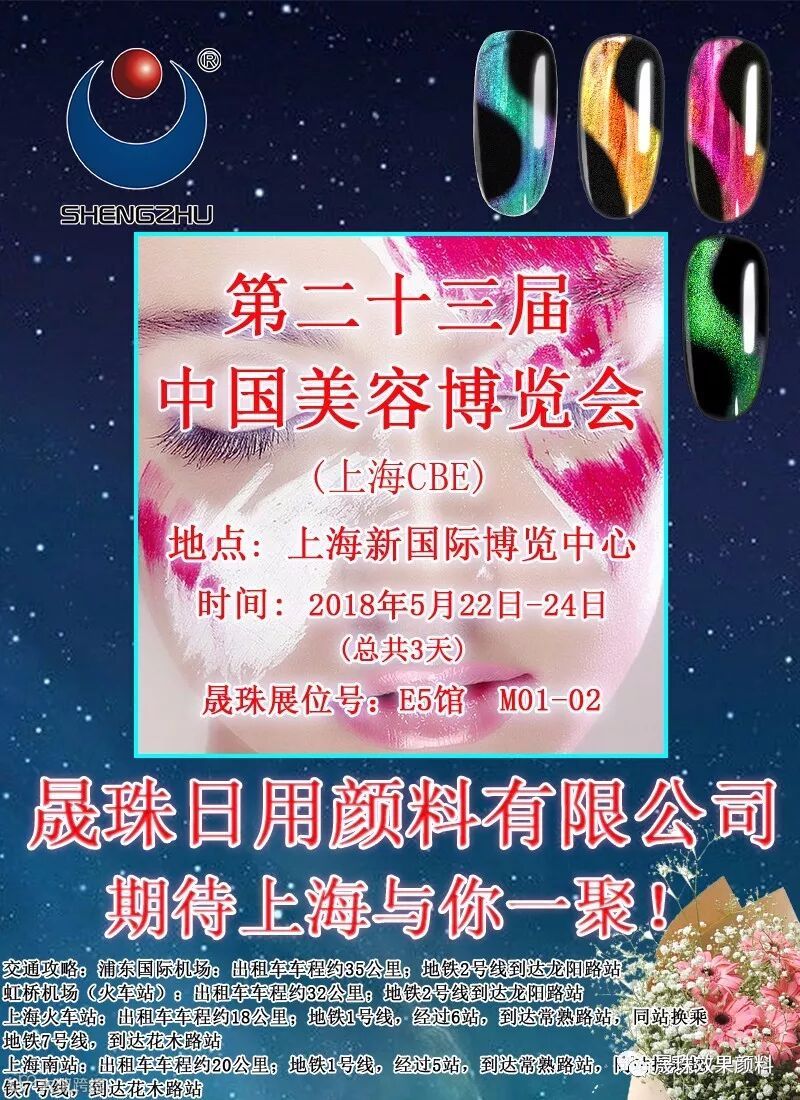 转眼到了5月份,距离第二十三届中国美容博览会(上海CBE)开展只有半个月的时间了,我们晟珠日用颜料有限公司将会前往参加,小伙伴们届时要来哦,我们在上海美容博览会不见不散。