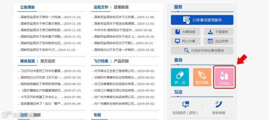 ①、进入国家药品监督管理局官网: