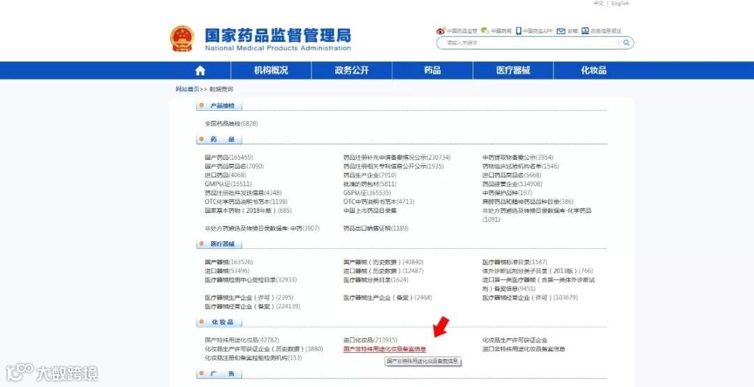 ③、点击“国家非特殊用途化妆品备案信息”