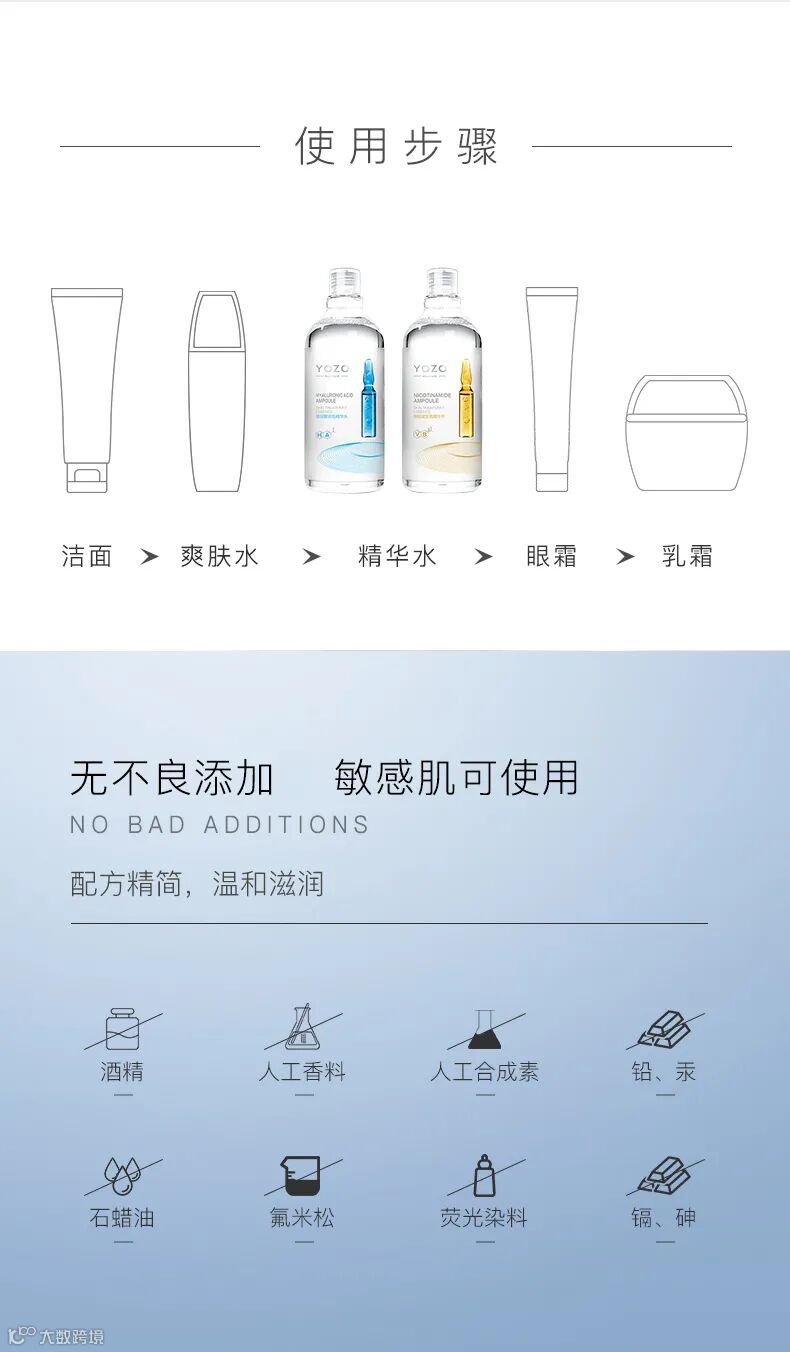 无论是作为妆前补水保湿,保证后续上妆滋润不卡纹;还是作为日常护理,大面积湿敷补水,或者是晒后修复,缓解受紫外线和高温侵害后的肌肤状况,悠纪的安瓶精华水都是你的不二之选。